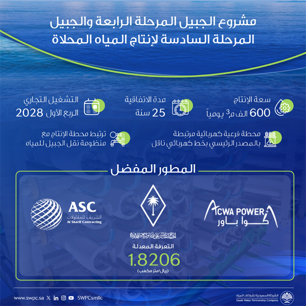 الإعلان عن المطور الفائز لمشروع الجبيل المرحلة الرابعة والجبيل المرحلة السادسة لإنتاج المياه المحلاة